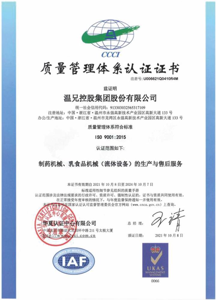¡¡¡¡¹«Ë¾Ê¼´´ÓÚ2002Ä꣬ע²á×ʱ¾10069ÍòÔª£¬ÊǼ¯Éè¼Æ¡¢ÖÆÔì¡¢×°ÖÃÖÆÒ©»úе¡¢ÈéʳƷ»úе¡¢»¯¹¤»úе¡¢ÐÂÄÜÔ´×°±¸¡¢ÎÀÉú¼¶±Ã·§Á÷ÌåÉ豸ÓÚÒ»ÉíµÄÖÇÄÜÖÆÔìЧÀͼ¯³É¹©Ó¦ÉÌ¡£Êǹú¼Ò¸ßм¼ÊõÆóÒµ¡¢ÖйúÖÆÒ©×°±¸ÐÐҵлáÀíʵ¥Î»¡¢¹ú¼ÒÖÐÒ©ÏÖ´ú»¯¿Æ¼¼¹¤Òµ£¨Õã½£©»ùµØÊ¾·¶ÆóÒµ¡¢Õã½Ê¡×¨¾«ÌØÐÂÆóÒµ¡¢Õã½Ê¡ÒþÐιھüÆóÒµ£¬ÎÂÖÝÊÐÖÇÄÜÖÆÔì×°±¸Ê¾·¶ÆóÒµ¡£²¢ÓµÓйú¼ÒÌØÖÖÉ豸Éú²úÐí¿ÉÖ¤¡¾Ñ¹Á¦ÈÝÆ÷ÖÆÔì-ÀιÌʽѹÁ¦ÈÝÆ÷ÖС¢µÍѹÈÝÆ÷£¨D£©¡¿¡¢GC2ÀàѹÁ¦ÈÝÆ÷¹ÜµÀ×°ÖÃÐí¿ÉÖ¤£»½¨Öþ»úµç×°Öù¤³Ìרҵ³Ð°üÈþ¼¶×ÊÖÊ¡£Í¨¹ýISO 9001ÖÊÁ¿ÖÎÀíÌåϵ¡¢ISO 45001Ö°Òµ½¡¿µÄþ¾²ÖÎÀíÌåϵ¡¢ISO 14001Çé¿öÖÎÀíÌåϵÈÏÖ¤¡£